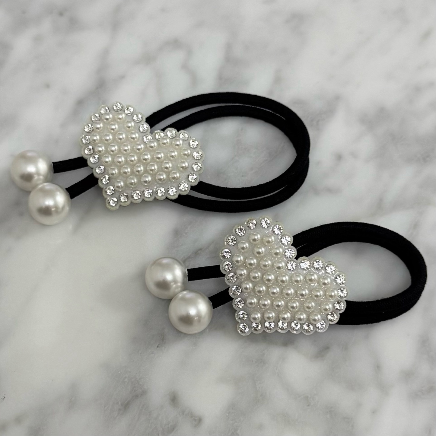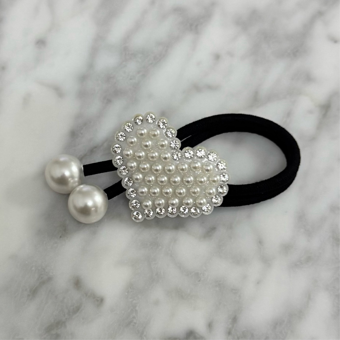 パールのハートのまわりにストーンが付いているので