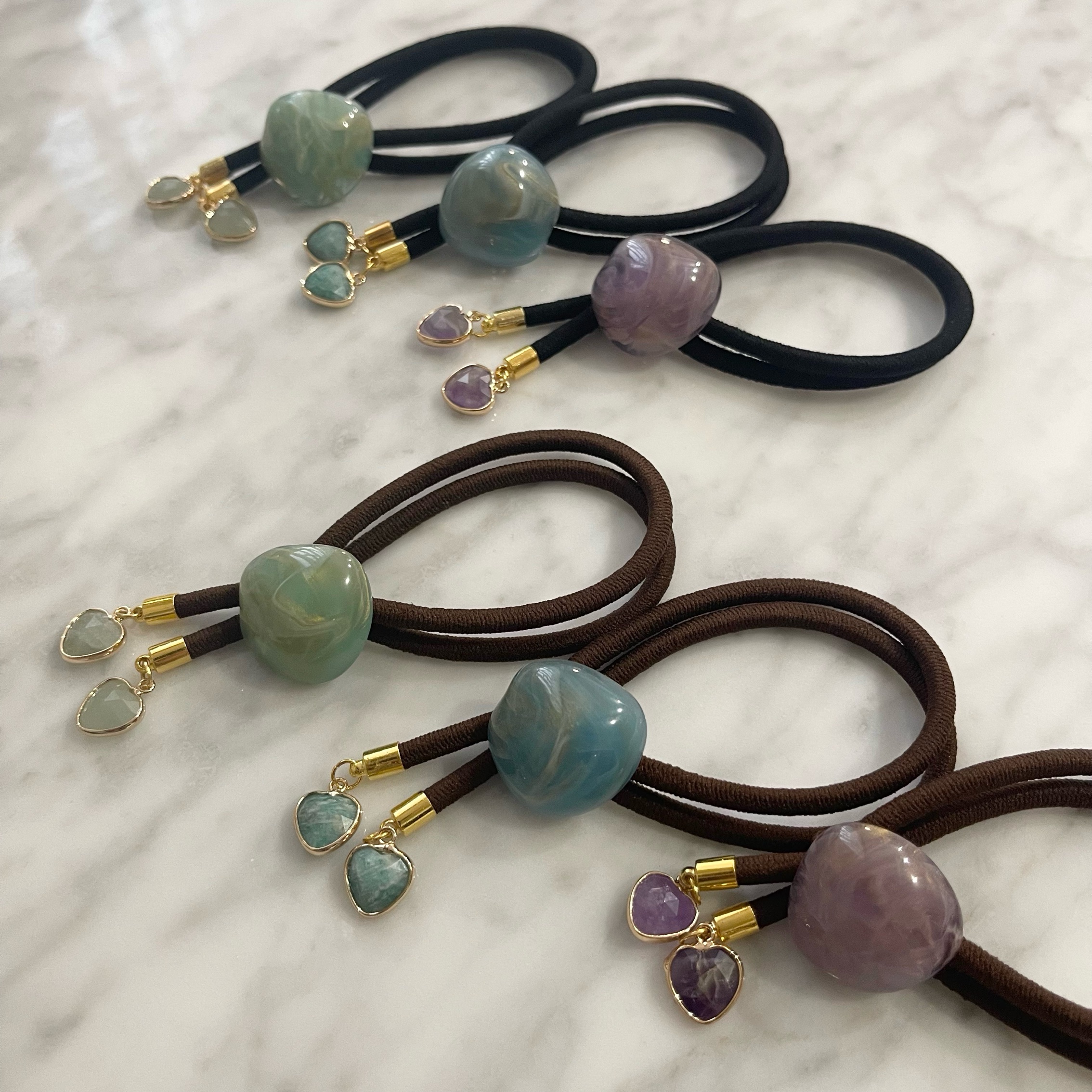 ブラウン×グリーン(グリーンアベンチュリン), ブラック×グリーン(グリーンアベンチュリン), ブラック×ブルー(アマゾナイト), ブラック×パープル(アメジスト), ブラウン×ブルー(アマゾナイト), ブラウン×パープル(アメジスト)