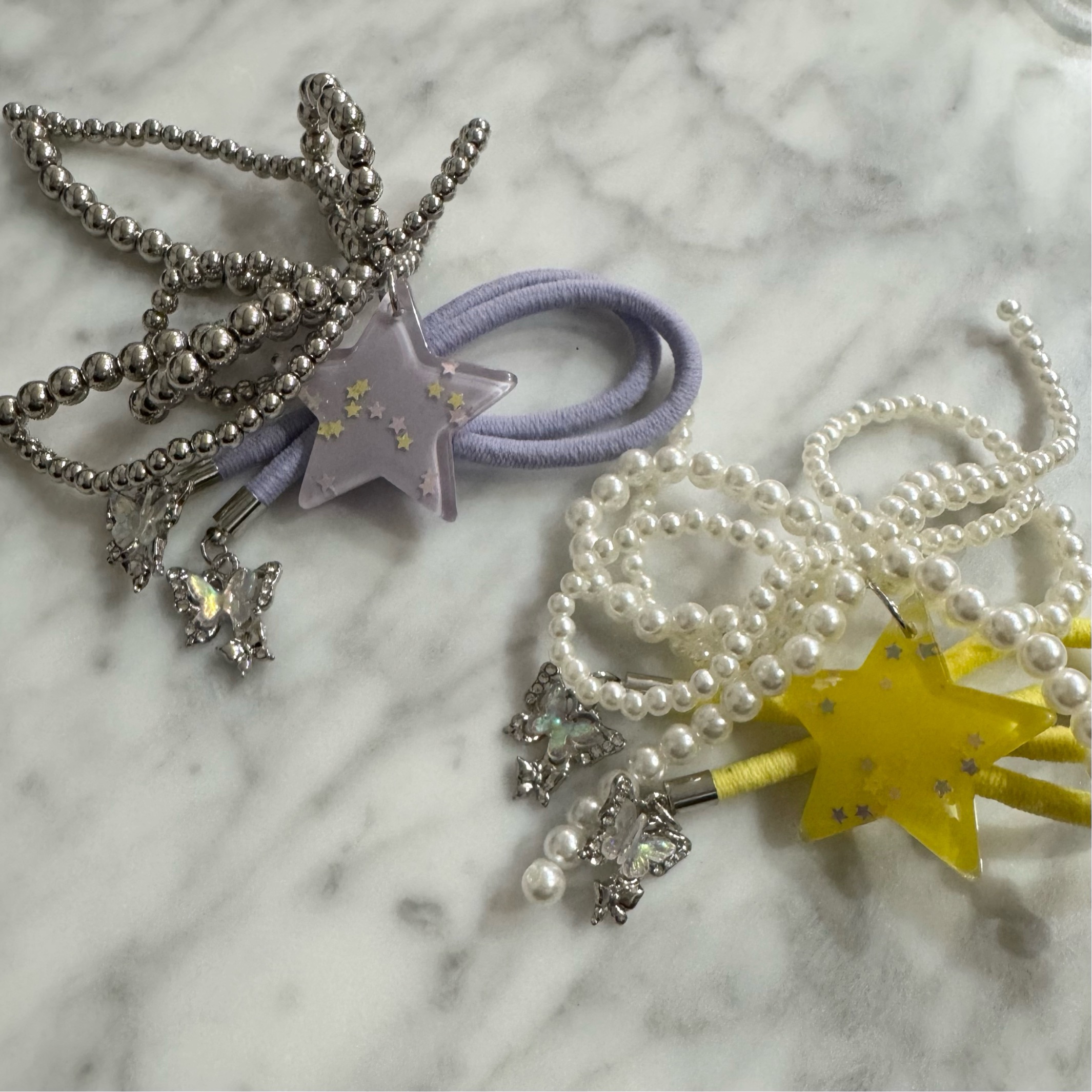 垂れる部分にはオーロラカラーの蝶々チャームを使用しています